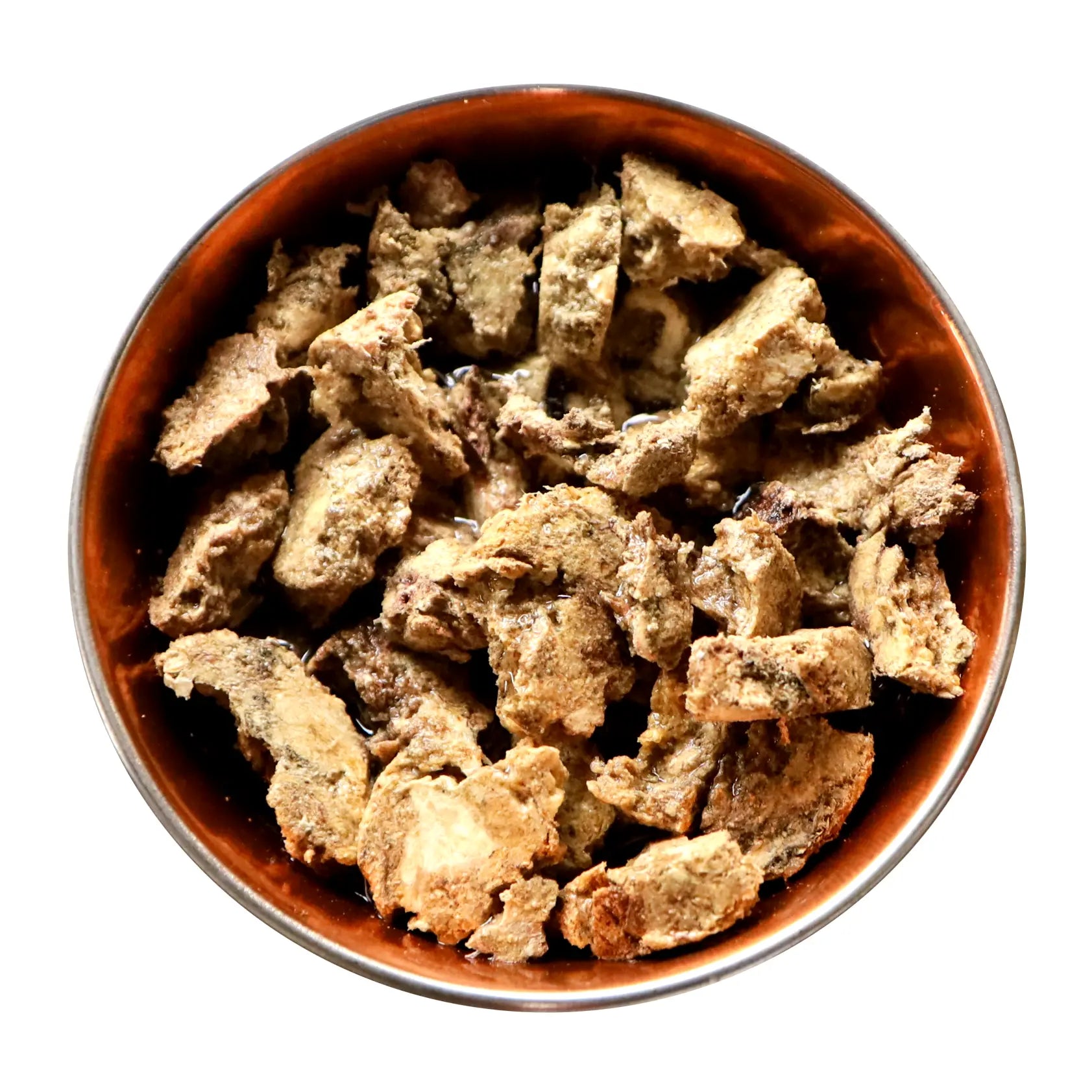 Passer som BARF-komponent, som topping oppå hverdagsfôret eller som en naturlig godbit, rett fra posen.