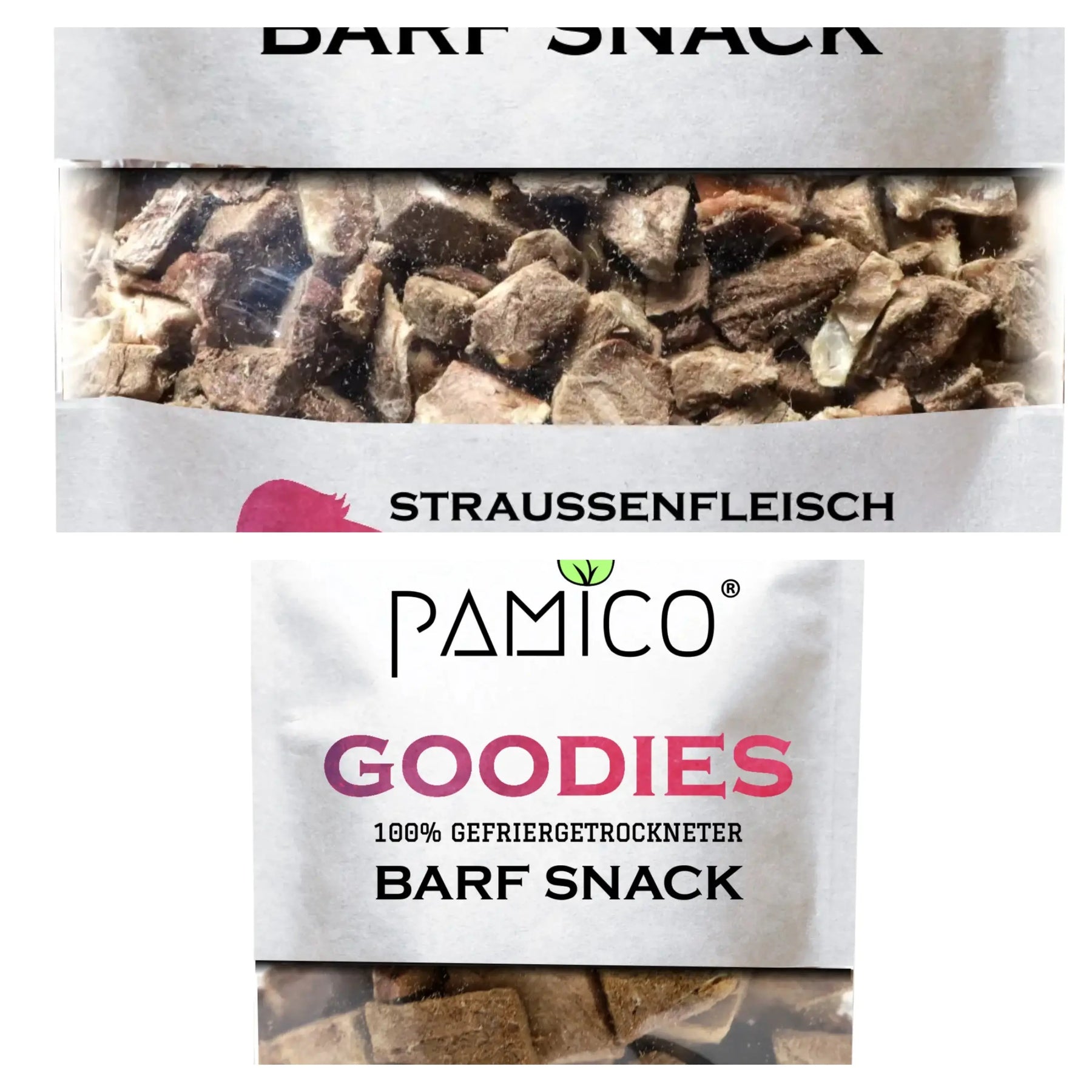 Pamico smakspakke: Frysetørkede- strutsekjøtt + hestehjerter