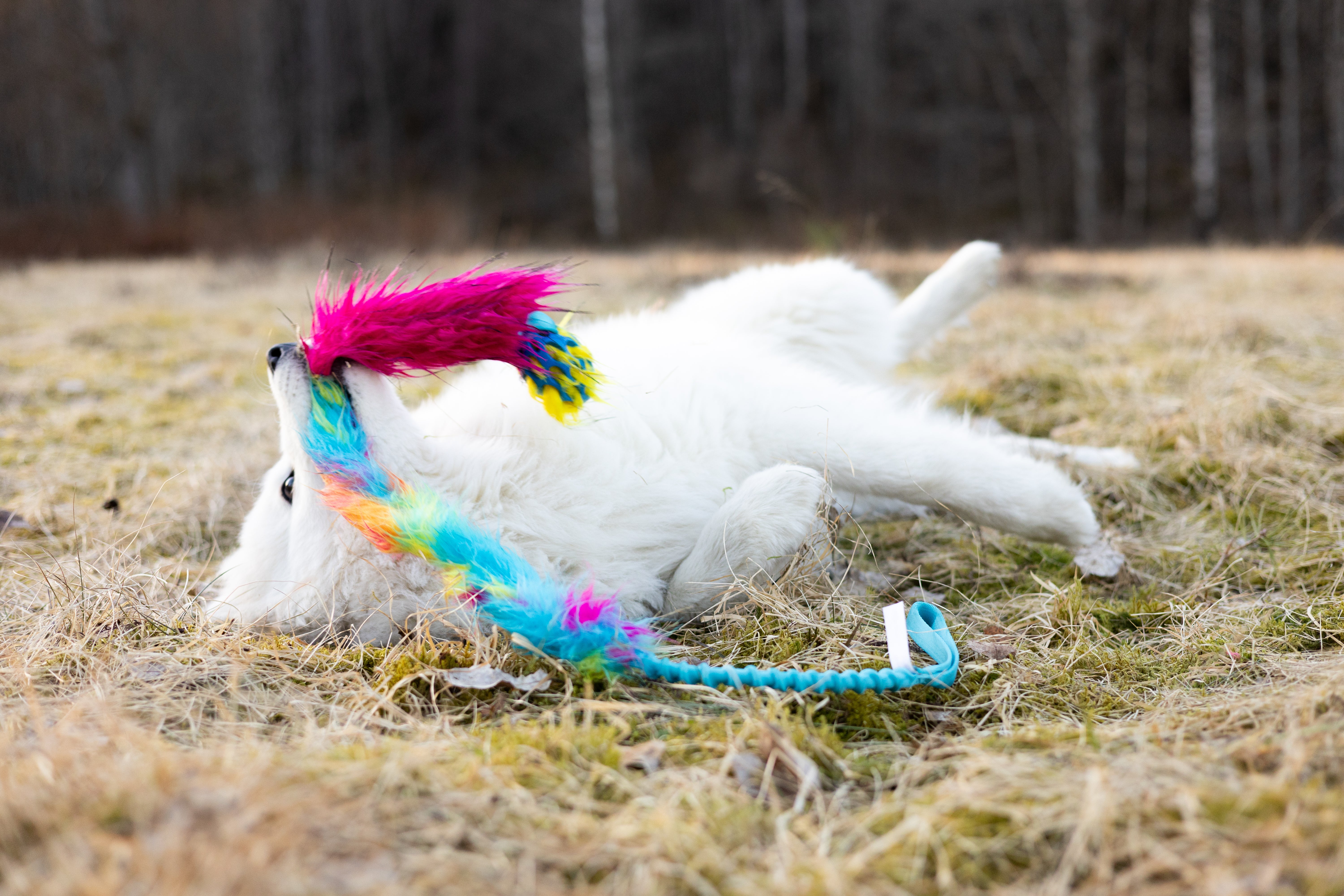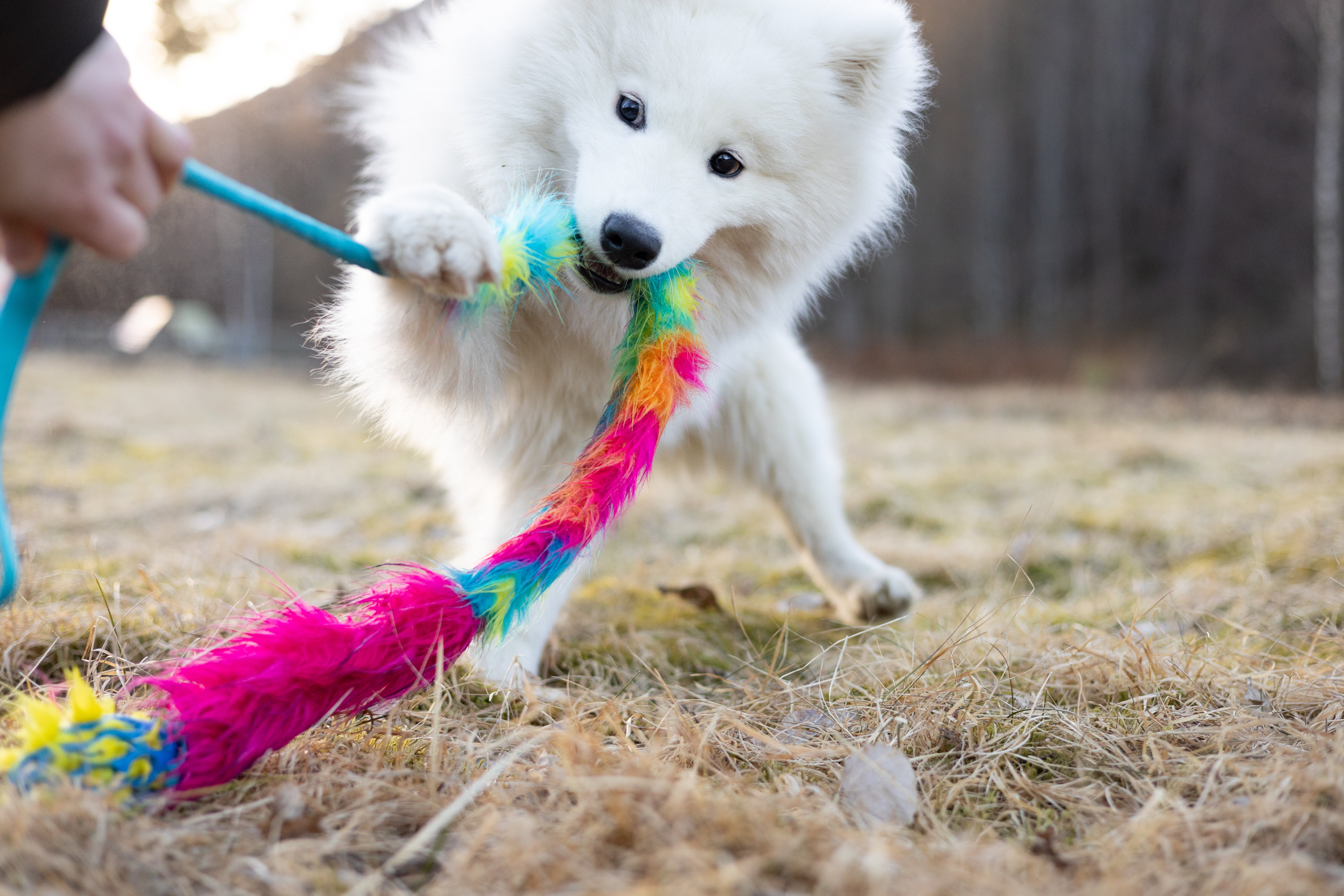 Vi anbefaler ikke dette, da dette er en treningsleke ment for samspill mellom deg og hunden.