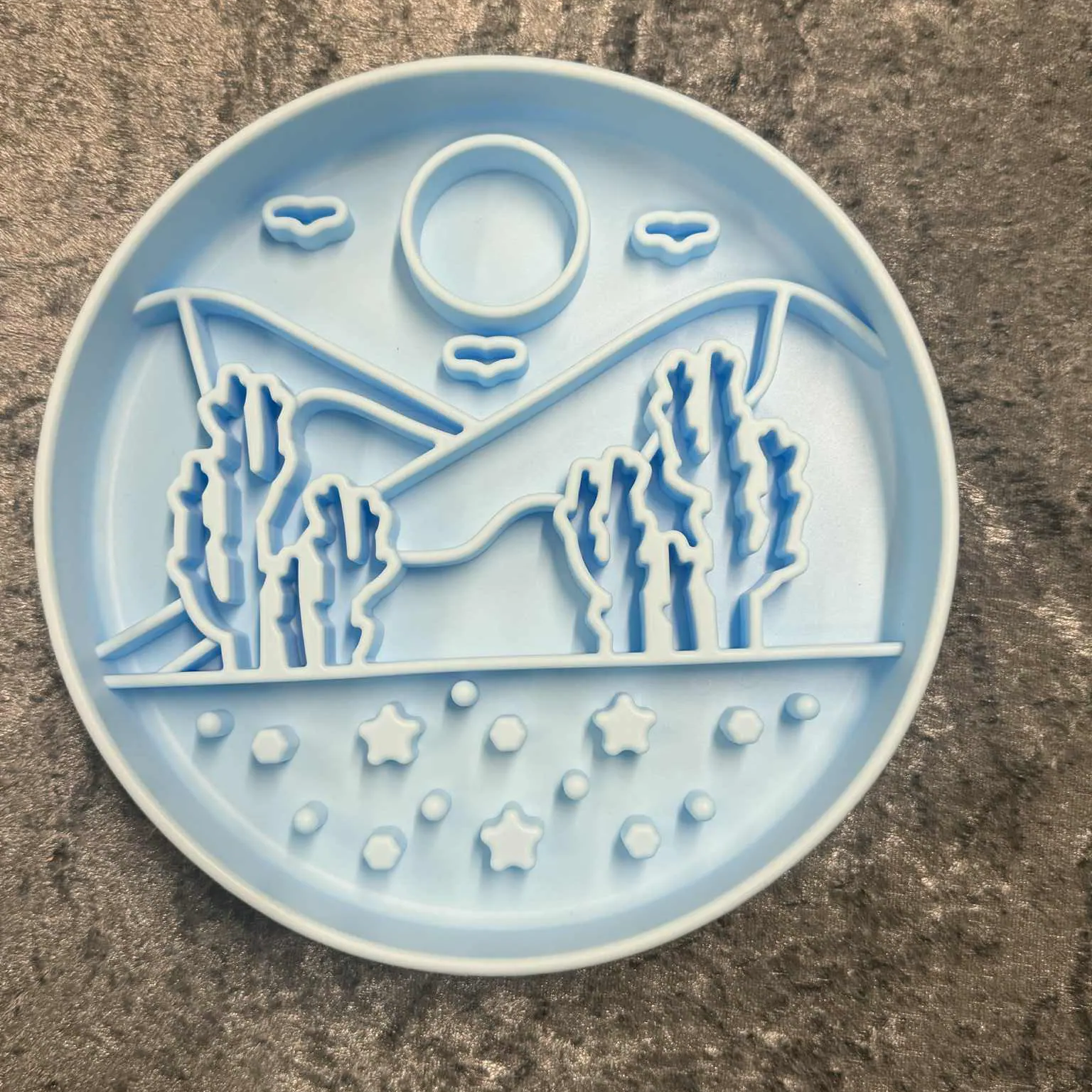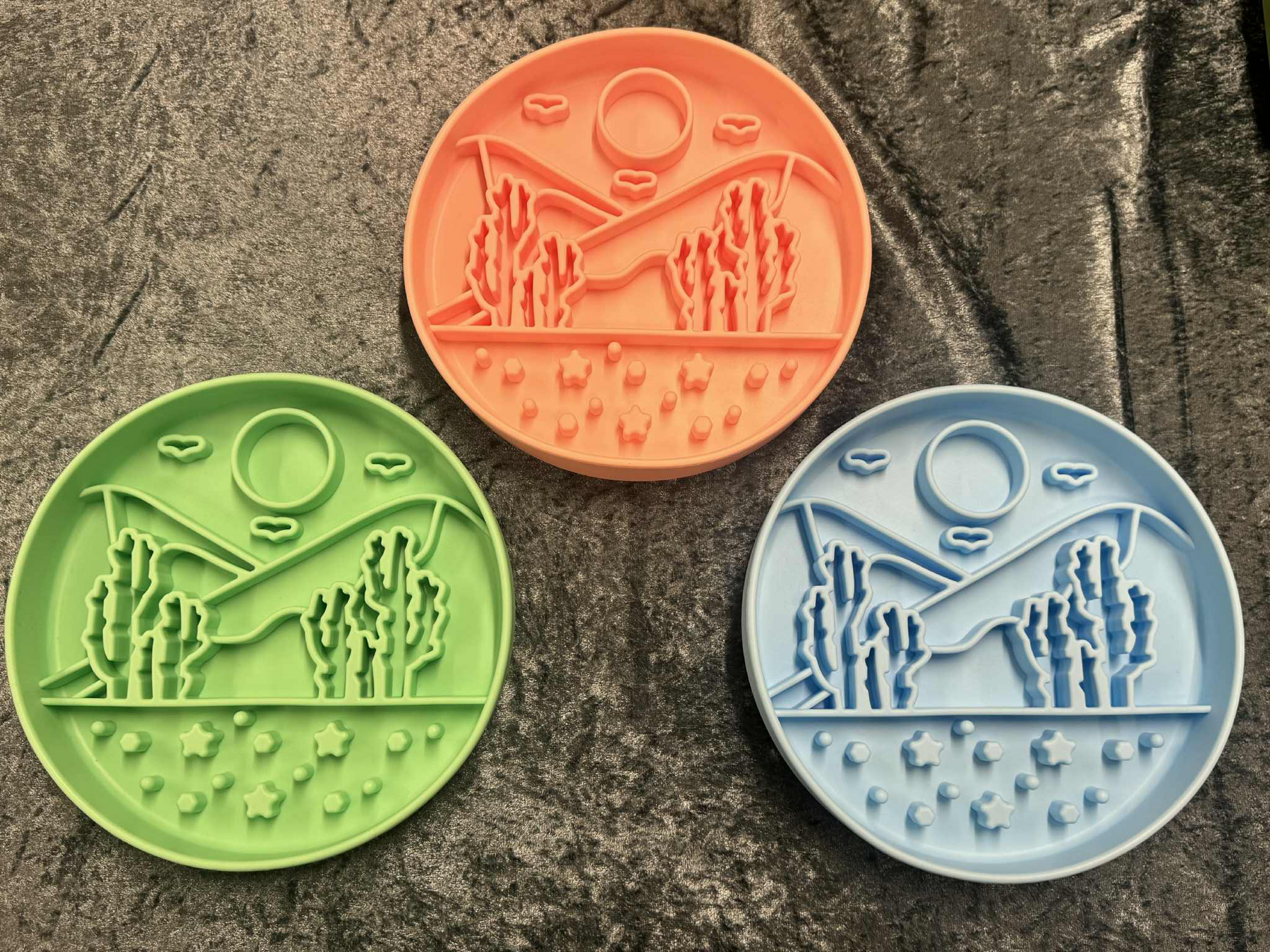 Dimensjoner: 20 x 20 x 4. Litt større enn hval slowfeederen, og like høy som hval slowfeederen.