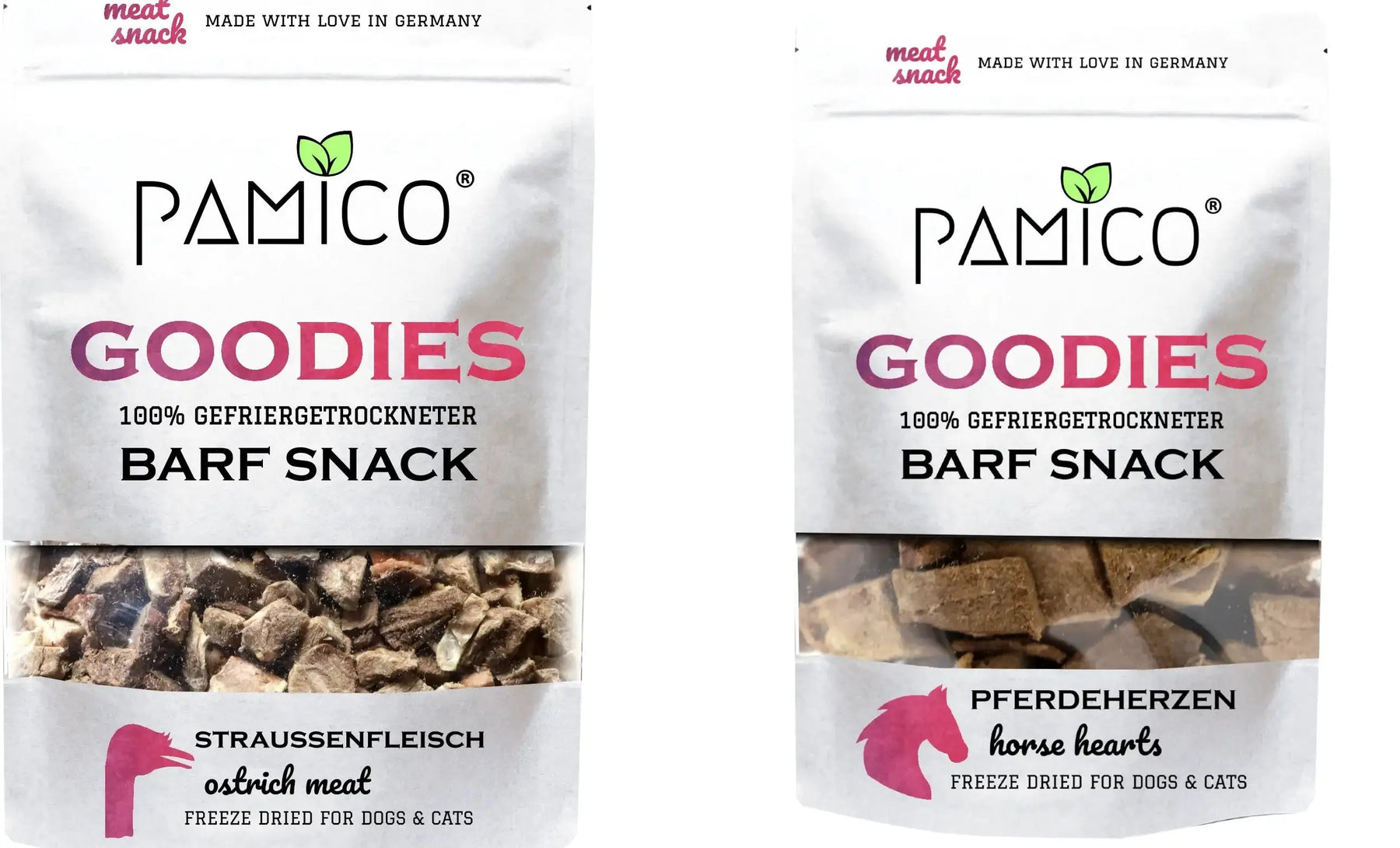Pamico smakspakke: Frysetørkede- strutsekjøtt + hestehjerter